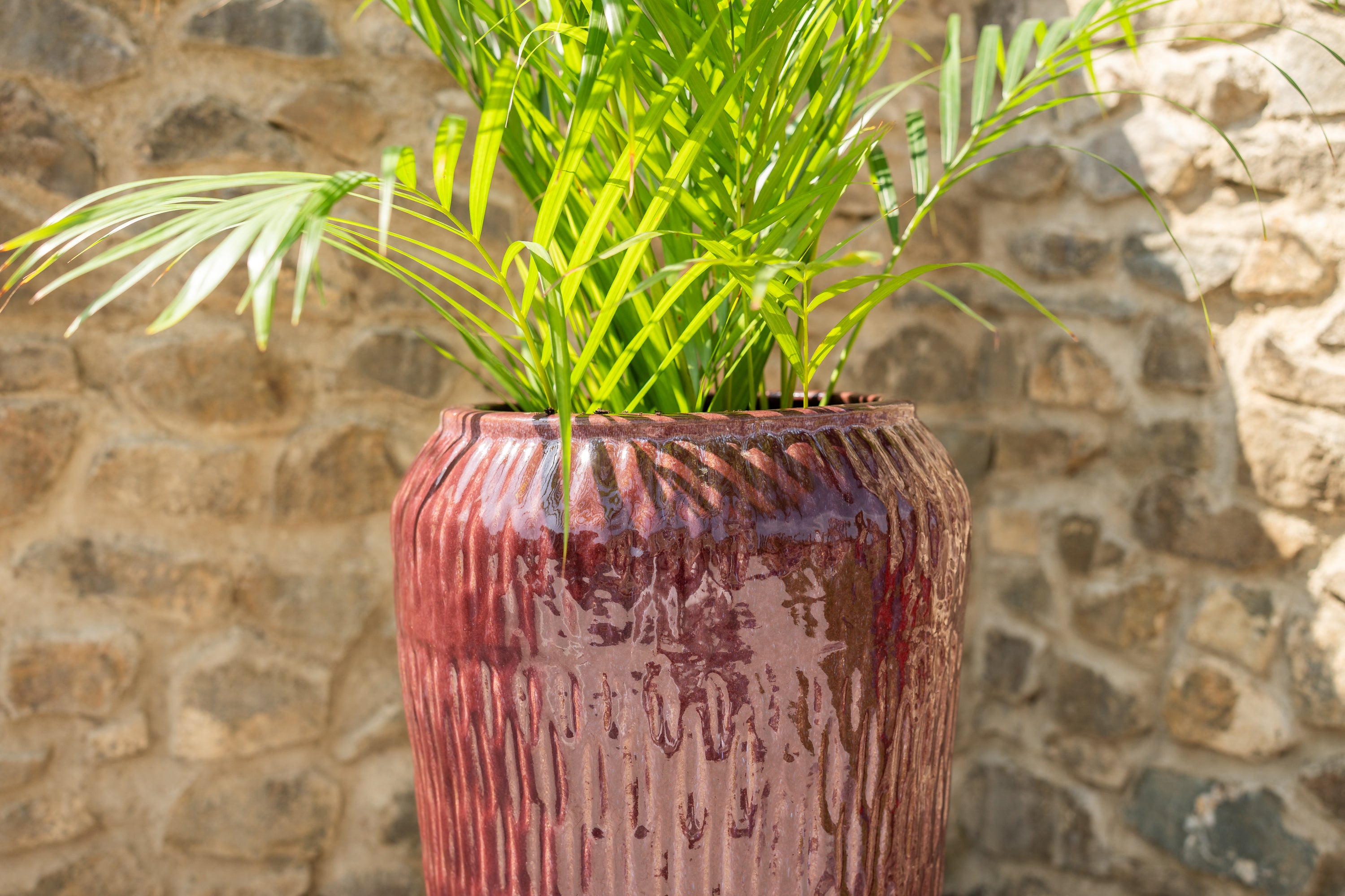 Verleihen Sie Ihrem Garten zeitlosen Stil mit dem handgefertigten Blumentopf Provencelia Pompadour. Inspiriert vom traditionellen Anduze-Stil ist dieser Blumentopf sorgfältig aus glasierter Terrakotta gefertigt, die frost- und wetterbeständig ist. Erhältlich in verschiedenen Größen – von L bis XXL mit einer Höhe von bis zu 68 cm – besticht er durch seine schöne ziegelrote Farbe und sein klares Design, das die Reinheit und Schlichtheit dieses Blumentopfs unterstreicht.
